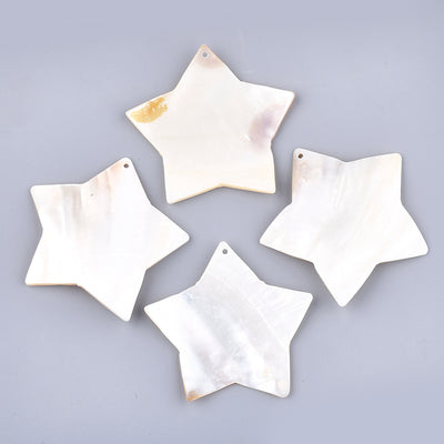 Elevate your summer style with this Freshwater Big Shell Star Charm! Measuring in at 65 to 66.5mm tall x 68 to 70.5mm wide x 4 to 6mm thick, this natural shell charm adds the perfect pop of summer vibe to any necklace. Plus, with a threading hole of 2mm and 2 pieces per package, it's easy to create a playful, quirky look that is sure to be a great focal point. (Summer style approved!)