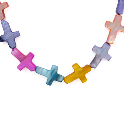 Get ready to add some funky flair to your jewelry collection with this vibrant Multicolor Cross Shape Shell Bead Strand! Each 10x15mm Cross Shell Bead features a 2mm hole and can be easily incorporated into your designs. And with 7.5in of beads in each strand, you'll have plenty to work with. Don't miss out on this playful and unique addition to your crafting supplies - package contains 1 strand.