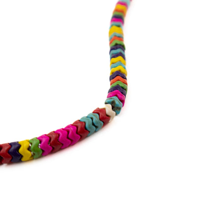 Get your hands on a Strand of Multicolor ZigZag Shape Howlite Bead Shape for a playful and quirky addition to your jewelry collection! Each 8" long strand contains 1 strand of 3x6mm diameter beads - perfect for adding some unique and humorous flair to your designs.