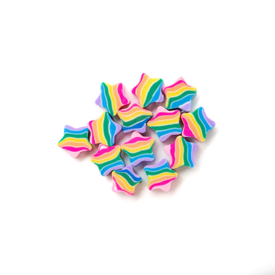 Add a touch of whimsy and shine to your crafts with these Polymer Clay Beads. Each set features an assortment of vibrant rainbow stars, perfect for creating eye-catching designs. Made from high-quality polymer clay, these beads are durable and easy to work with. Let your imagination run wild with endless possibilities!