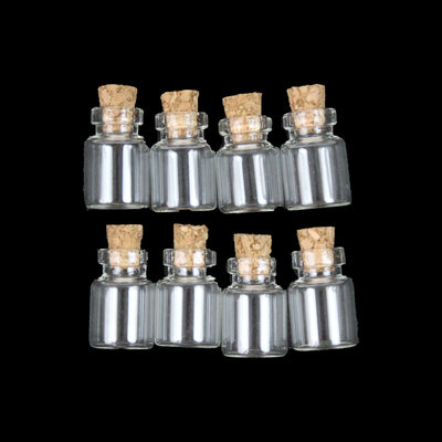 This cute tiny Glass Bottles with cork caps are perfect for necklace bottle memories. Comes 8 bottles per pack and each one measures 15mm wide X 26mm tall. The capacity per bottle is 5ml (0.18 oz). If you are looking for the best hangers to screw in the cork; check out this items: