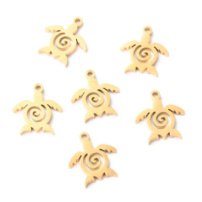 Get into the island spirit with this Stainless Steel Sea Turtle Spiral Charm! The charm measures 12x11x1mm and features a looping hole size of 1mm, perfect for any nature lover's collection. Each package includes 2 pieces and you can choose between gold or silver options. Get ready for some summer vibes and show off your Caribbean style with this quirky charm!