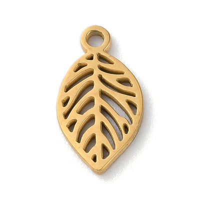 This stainless steel charm is all about nature! Measuring 12x6.5x1mm, with a looping hole of 1.2mm, it features a laser cut design of a leaf. Made with high quality 304 stainless steel, it comes in gold and silver colors. Perfect for earth lovers and nature seekers looking to add some nature-inspired flair to their style. 2 pieces per package.