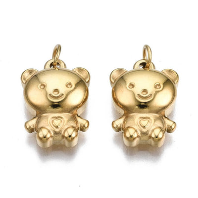 Introducing our 14k Gold Plated Stainless Steel Bear Charm, a symbol of strength and resilience. Available in 14k gold plated or silver color options, this charming piece is exclusively sold online and comes in a package of 1. Limited quantities available, so add it to your collection today.