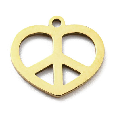 18k Gold Plated Stainless Steel Heart with Peace Sign Pendants