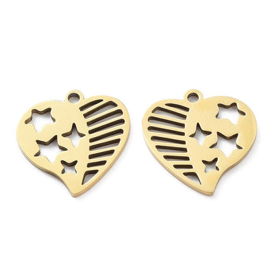 Elevate your jewelry game with our 18k gold plated stainless steel charm. Adorned with a delicate hollow heart and stars, this piece exudes a luxurious and exclusive vibe. The charm's petite size of 15.5mm x 15mm adds a touch of elegance, making it the perfect addition to your collection. Package includes 1 piece.