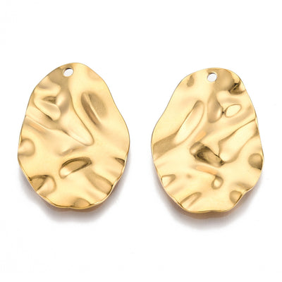 Elevate your accessories with our 18k gold plated or 201 high quality stainless steel Textured Oval Pendant. Each package includes 4 pieces, perfect for adding a touch of luxury to your jewelry designs. Measuring 30mm x 20.5mm x 2mm thick with an inner hole of 1.6mm, these pendants are sure to make a statement. But heads-up! These are limited quatity available, so act fast and adquire yours exclusively online only.