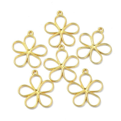 Sprinkle some funky flower power into your jewelry collection with our Alloy Gold Hollow Flower Charm! Each pack comes with 5 of these beauties, measuring 19x17mm. Perfect for adding a playful touch to your DIY creations.