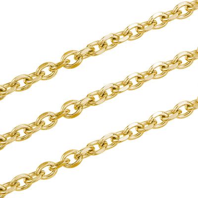 This high quality stainless steel chain spool features 2.5mm x 2mm x 0.5mm oval links, for a total of 10 meters (32.8 feet) of chain. Available in either gold or silver, this versatile chain can easily be cut to your desired length, making it perfect for any jewelry project.