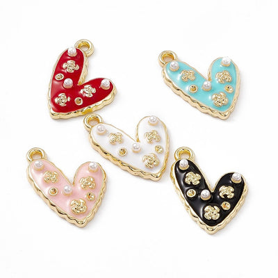 This set of 3 pendants features an alloy enamel design with imitation pearls, casted flowers, and a mix of colors including red, light blue, white, pink, and black. Each light gold heart-shaped pendant has a size of 21x14.5x4mm and a 1.6mm hole. Perfect for any creative craft project!
