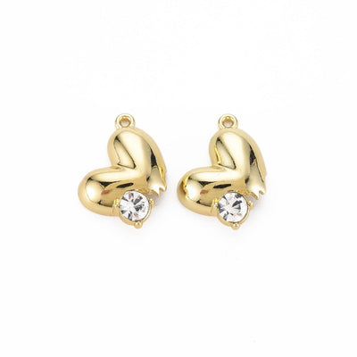 This dazzling Alloy Gold Plated Rhinestone Heart Pendant shines with elegance. Crafted to perfection with a size of 12x16x5mm and a 1.2mm hole, the heart charm is exquisite with its crystal rhinestone detail and coveted gold plated finish. It's also cadmium, lead and nickel free for safe and stylish wear. Each bag comes with 2 dazzling charms.