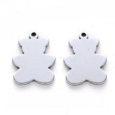Indulge in luxury with our Stainless Steel Bear Tag Charm. Available in elegant gold or silver, these charms feature a whimsical bear design that will add a touch of charm to any accessory. Each package includes 6 pieces for our silver option or 4 piece for our gold option. Measures 16mm x 11.5mm x 1mm.
