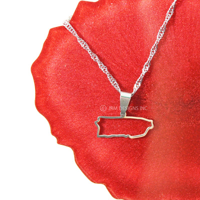 Beautiful long-lasting stainless steel hollow Puerto Rico island map charm with chain necklace.