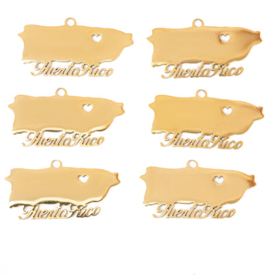 This modern Stainless Steel Puerto Rico Map and Name Pendant is perfect for showing your Puerto Rican pride. Crafted from high-grade stainless steel, this pendant is available in gold and features a stunning Puerto Rico island map and name design. Each package comes with 6 pieces. Show your Boricua pride in style!