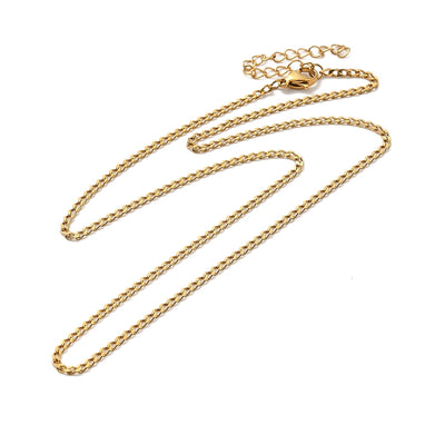 This Stainless Steel Flat Curb Link Chain Necklace with Extender is made with 304 high quality Stainless Steel and features a 2mm Flat Curb Link design that's perfect for beadable making. It comes in a package with 1 necklace, available in both gold and silver options. Plus, with its 17.95 inch length and included 2 inch extender, it's easy to adjust for the perfect fit.