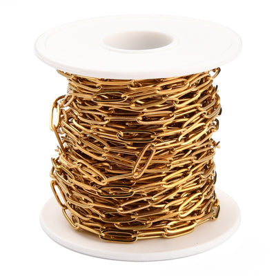 Transform your custom jewelry designs with our exclusive Ion Plating Gold Paperclip Chain. Crafted with premium quality 304 Stainless Steel, this chain adds a touch of sophistication and luxury. Available in limited quantities by feet as a 12-inch length or a 33-foot spool (equivalent to 10 meters), the 12mm paperclip links are meticulously designed to be 4mm wide and 1mm thick. Enhance your creations with this elegant and tasteful chain, a must-have for any discerning artisan.