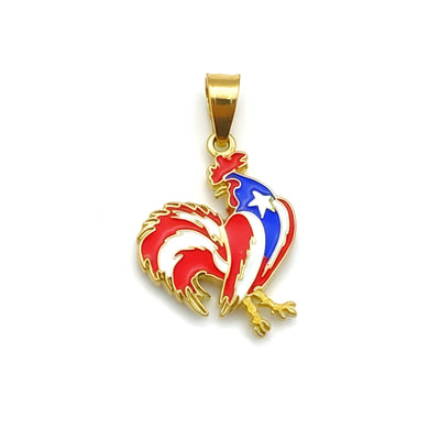 Stainless Steel Puerto Rico Rooster Flag Pendant