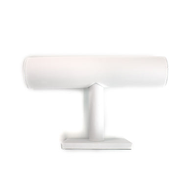 This 5.5-inch tall, 7.75-inch wide and 2.75-inch deep display is made of white imitation leather and an ideal way to showcase bracelets and watches. The classic style and neutral tone make it a great addition to any store counter or cabinet, adding a touch of sophistication.