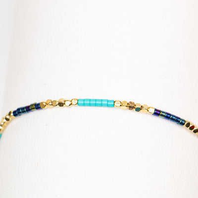 Gold, Teal & Purple Bead Adjustable Bracelet Jewelry