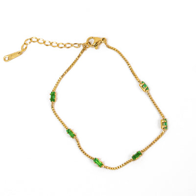 Stainless Steel Gold Bracelet with Emerald Rhinestone Squares