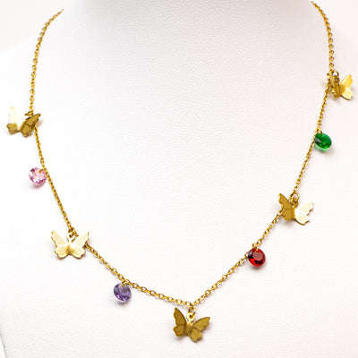 Stainless Steel Gold Butterflies Colorful Charms Necklace Jewelry