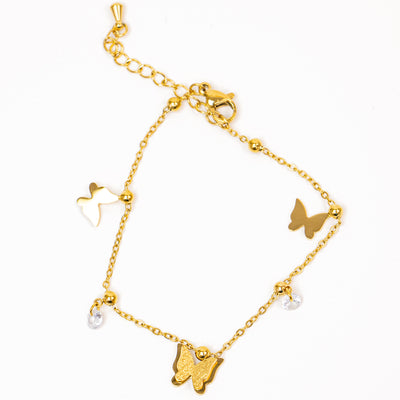 Stainless Steel Gold Butterflies & Rhinestone Bracelet Jewelry