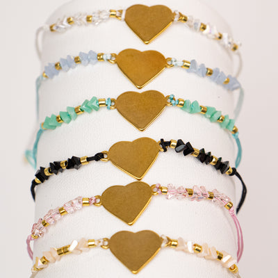 Stainless Steel Gold Heart Connector Adjustable Bracelet Jewelry