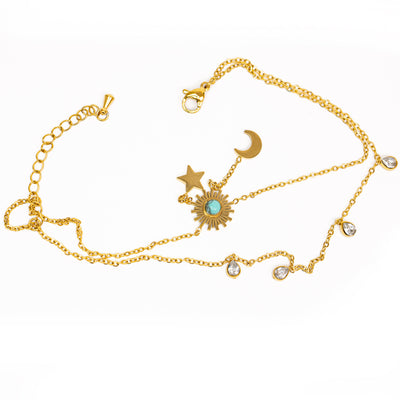 Stainless Steel Gold Moon, Stars & Rhinestone Anklet Jewelry
