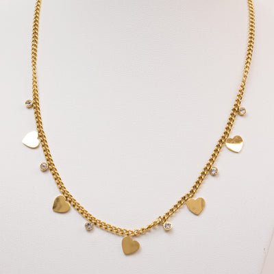 Stainless Steel Gold Necklace with Golden Hearts and Rhinestone Circles
