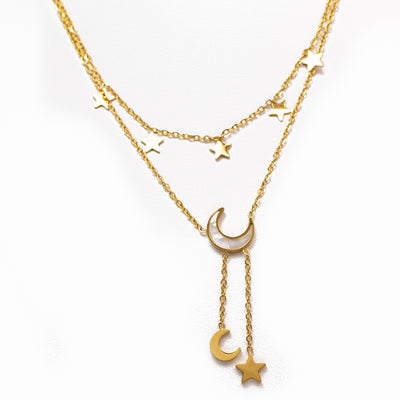 Stainless Steel Gold Stars and Moons Necklace Jewelry