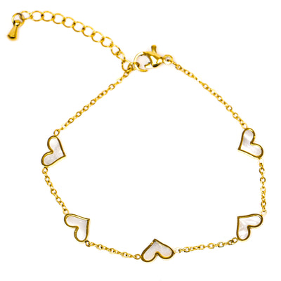 Stainless Steel Gold White Hearts Bracelet Jewelry