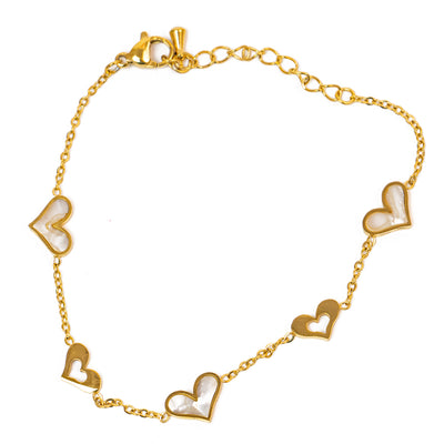 Stainless Steel Mother Pearl & Gold Hollow Hearts Bracelet Jewelry