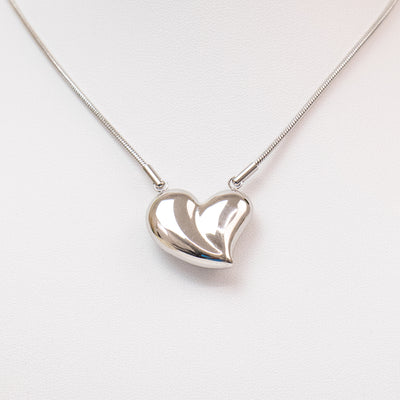 Stainless Steel Silver Necklace with Puffed Heart Connector
