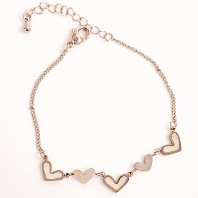 Stainless Steel Silver White Hearts Connector Bracelet Jewelry