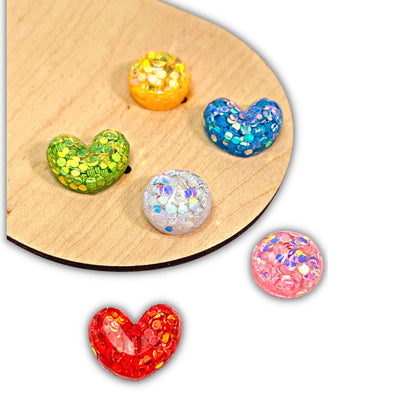 Take your style to the next level with this shiny and sparkly Acrylic Glitter Flat Backs Rounds & Hearts Assortment! Featuring an iridescent mix of hearts and rounds cabochon sizes 20-22mm in a pack of 6, it's a surefire way to add some modern pizzazz to any outfit! Shine on, you glittery thing, you!