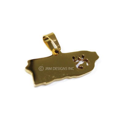 High-quality Stainless Steel Puerto Rico Island Map Charm with Taíno Coqui (6 pieces) Superior stainless steel charm with a uniquely crafted Taíno coquí. Size: 25 mm W x 9 mm H x 1 mm thickness.