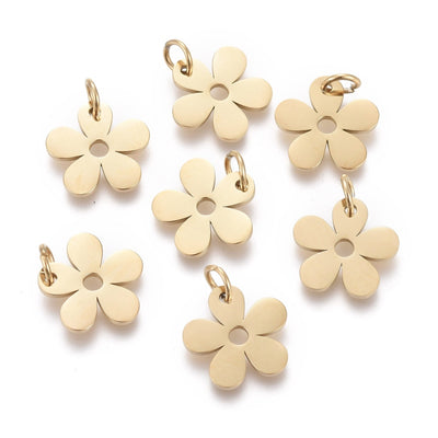 Elevate your style with our Stainless Steel Mini Flower Charm. Crafted with a minimalist design and ion plated stainless steel, this charm adds a touch of elegance to any ensemble. The intricate laser cut gold daisy flower design is a statement piece that is both sophisticated and refined. Each package includes 1 charm, measuring at 11mm x 11.5mm x 0.8mm and a 4.4mm x 0.7mm jump ring. Upgrade your look with this exclusive accessory.