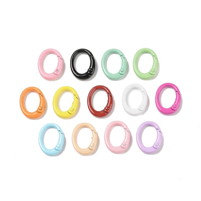 Bring some color to your life with these Alloy Oval Spring Gate Rings! With vibrant, assorted colors and a playful 19.5x15x4.5mm ring size, this package comes with 5 rings in an array of colors that will surely brighten up your day.