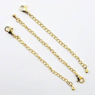 Stainless Steel Gold Chain Extender with Lobster Clasps and Bead Tips (3PCS)