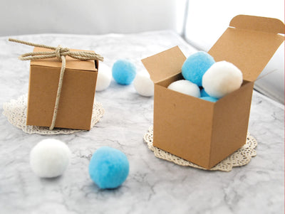 Give a unique birthday, shower or wedding favor to your guest with this kraft color cube favor box. Easy to assemble, keeps shape perfectly and has a jute string to give a crafty look. Not intended for heavy items. Choose your favorite size: