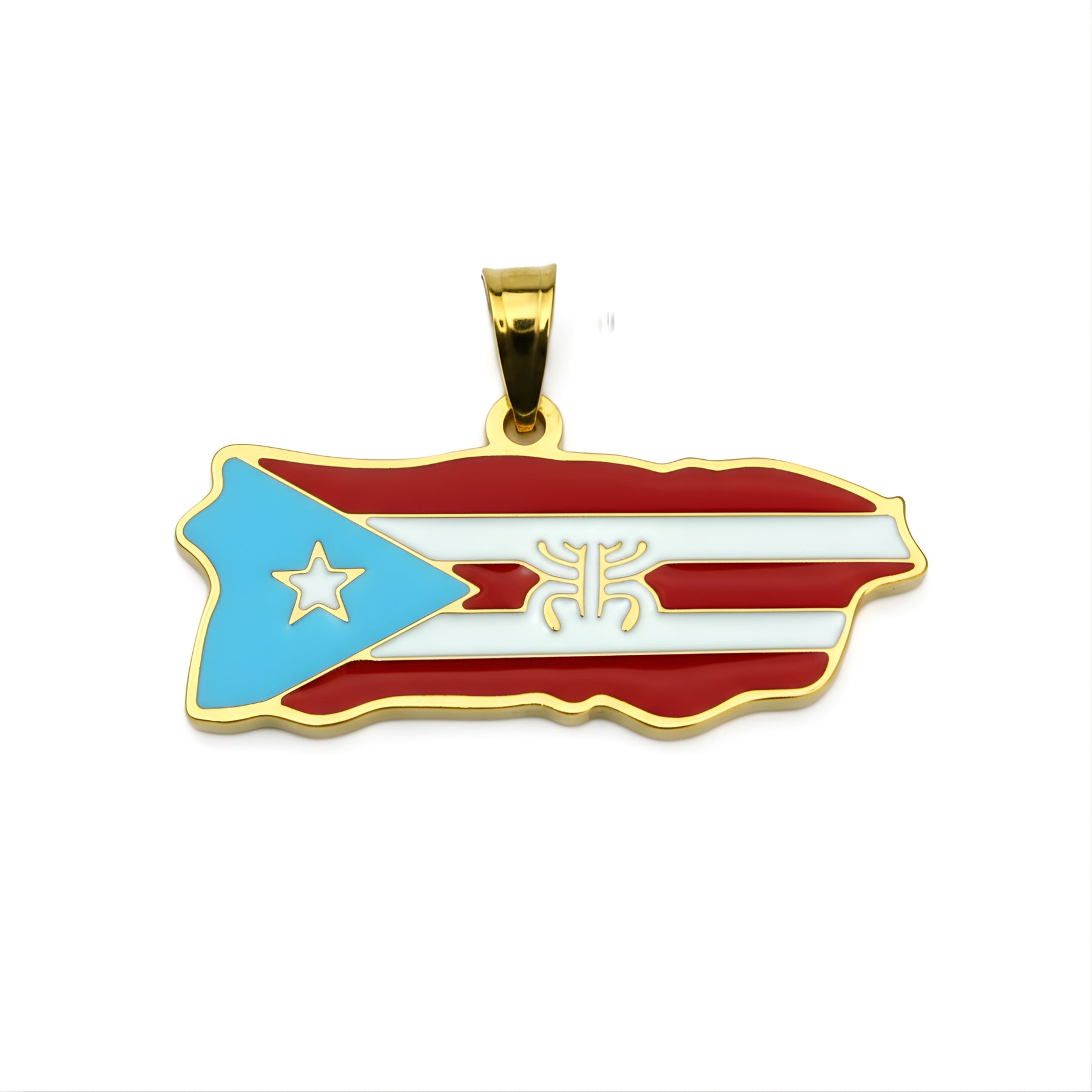 This stainless steel charm is expertly shaped like the map of Puerto Rico and features a vibrant enamel flag design accented by a central coqui Taino symbol. Its durable construction and detailed craftsmanship make it a sophisticated accessory that celebrates Puerto Rican culture with both style and resilience. Ideal for those who value meaningful, high-quality keepsakes.
