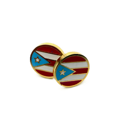 These 12mm round earrings feature a stainless steel base with a gold-tone finish, showcasing the Puerto Rico flag rendered in vibrant enamel. Designed for durability and elegance, they offer a refined way to display cultural pride while ensuring long-lasting wear. Perfect for everyday use or special occasions, these earrings combine craftsmanship with meaningful symbolism.