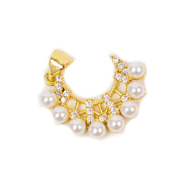 Get ready to shine like a moonbeam with our Micro Pave Gold Plated Moon Pendant! Complete with Imitation Pearls and a Bail, this 15x20.6mm beauty is perfect for adding a touch of celestial charm to any outfit. One pendant per package, so get yours now before they're gone!