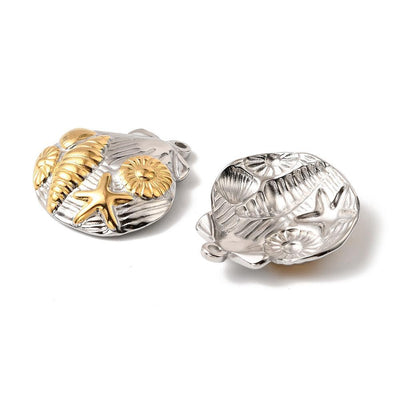 This 22*20*4.5mm charm from the Sea Life Collection features a finely crafted shell design in stainless steel with a sleek silver finish, accented by subtle gold tones. Its durable stainless steel construction ensures lasting shine and resistance to tarnish, making it an ideal addition to bracelets or necklaces for those who appreciate marine-inspired elegance. The delicate size balances visibility with wearability, allowing for easy layering or standalone display. Perfect for collectors or anyone seeking a refined accessory that captures the beauty of the sea with a sophisticated mix of metallic hues.