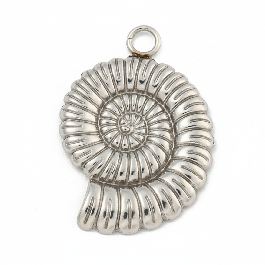 Crafted from durable stainless steel with a radiant gold finish or silver, this shell-shaped pendant measures 30x22x3.5mm, making it an elegant and lightweight accessory. The 16mm central hole offers versatile styling options, perfect for creating unique necklaces or bracelets that stand out. Add a timeless, ocean-inspired charm to your jewelry collection with this striking pendant.
