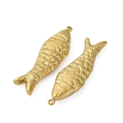 Crafted from durable stainless steel, this 41.5*12*5mm gold fish pendant offers both longevity and resistance to tarnish. Its compact dimensions make it an ideal accessory for subtle elegance, perfect for layering or wearing solo. The gold finish enhances its visual appeal, capturing light for a refined shimmer without compromising durability. Designed for everyday wear, this pendant is hypoallergenic and resists corrosion, ensuring it maintains its shine over time. Whether as a gift or a personal keepsake, it brings a delicate yet sophisticated touch to any jewelry collection.