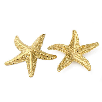 This 51.5*46.5*5mm gold starfish charm is crafted from durable stainless steel, combining strength with a luxurious finish that resists tarnishing and corrosion. Its compact size makes it a versatile pendant for necklaces or a distinctive charm for bracelets. The detailed starfish design adds a touch of nature-inspired elegance, perfect for those who appreciate subtle yet sophisticated accessories. Ideal for both casual and formal wear, this charm offers lasting shine and durability, ensuring it remains a cherished addition to your jewelry collection.