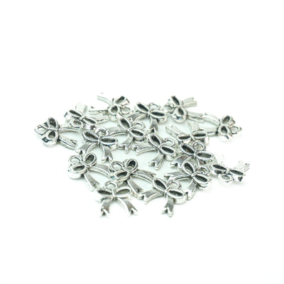 Behold the beautifully crafted Alloy Antique Silver Bowknot Charm, with dimensions of 11x9mm! Each package contains an awesome 25 pieces.