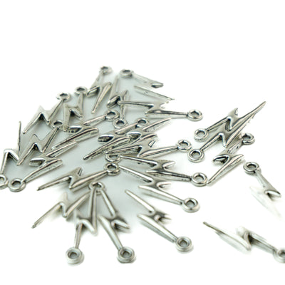 The Alloy Antique Silver Lightning Bolt Charm comes in a convenient package of 25 pieces, each one measuring 20x5mm. So whether you're a fan of metal charms or just love lightning bolts (who doesn't?), this is the perfect addition to your collection!