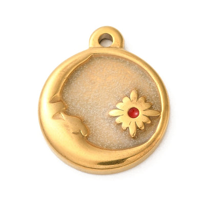 Get ready to moon-glow with this Stainless Steel Gold Charm, perfect for any occasion! Measuring 22x18x3mm and featuring a 1.6mm hole, this pendant will add a touch of whimsy and charm to your jewelry collection. One piece per package.